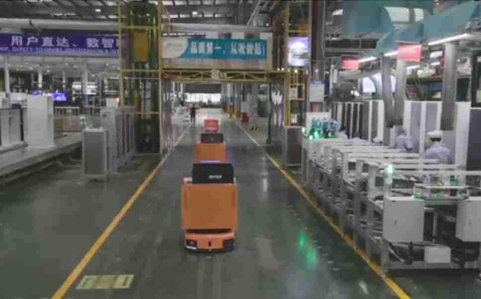 为车载冰箱物流配送打造的智能解决方案,,,包含产中物流通过潜伏举升AMR搬运至线边,,,,产后成品物流智能仓储,,流程包含产中物流智能齐套入库,,,线边安灯叫料AMR智能配送至线边,,,成品入库、、、、出库,,,通过无人堆高车机器人,,,,智能仓储管理替代人工作业管理,,,实现更高存储、、、、更高效率、、更具柔性化的解决方案。。。